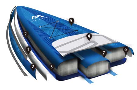 Aqua Marina développe et fabrique ses propres paddles gonflables. Ce fabricant a donc mis au point 4 technologies lui permettant de proposer des SUP rigides et léger à la fois. Petit tour des technologies employées par Aqua Marina :